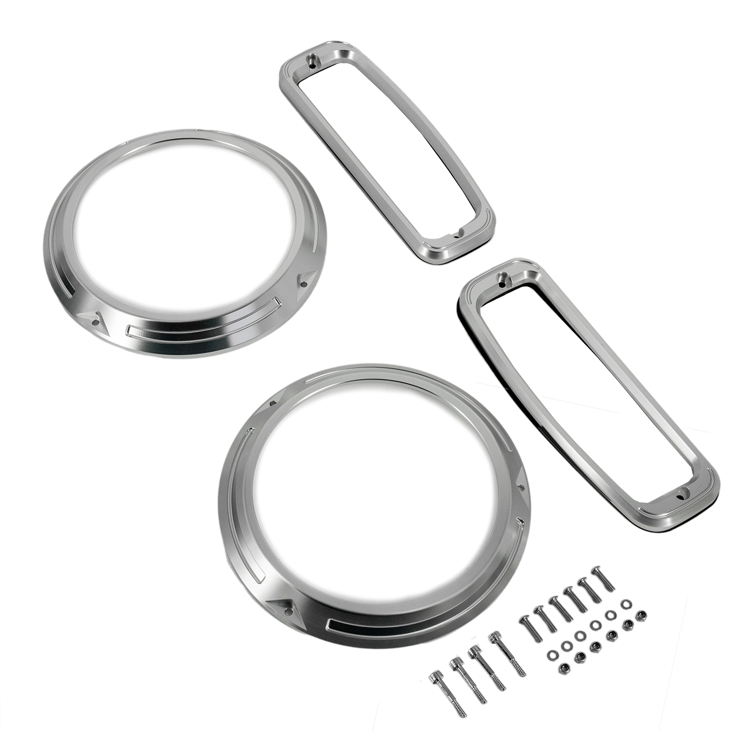 CNC machined for an exact fit, these billet aluminum pieces deliver a sleek upgrade over stock trim. The brushed finish catches light without being flashy, giving your Bronco a polished, tough look that pairs perfectly with both chrome and black-out builds. This complete kit includes two headlight rings and two tail light bezels, designed to install easily and fit perfectly.