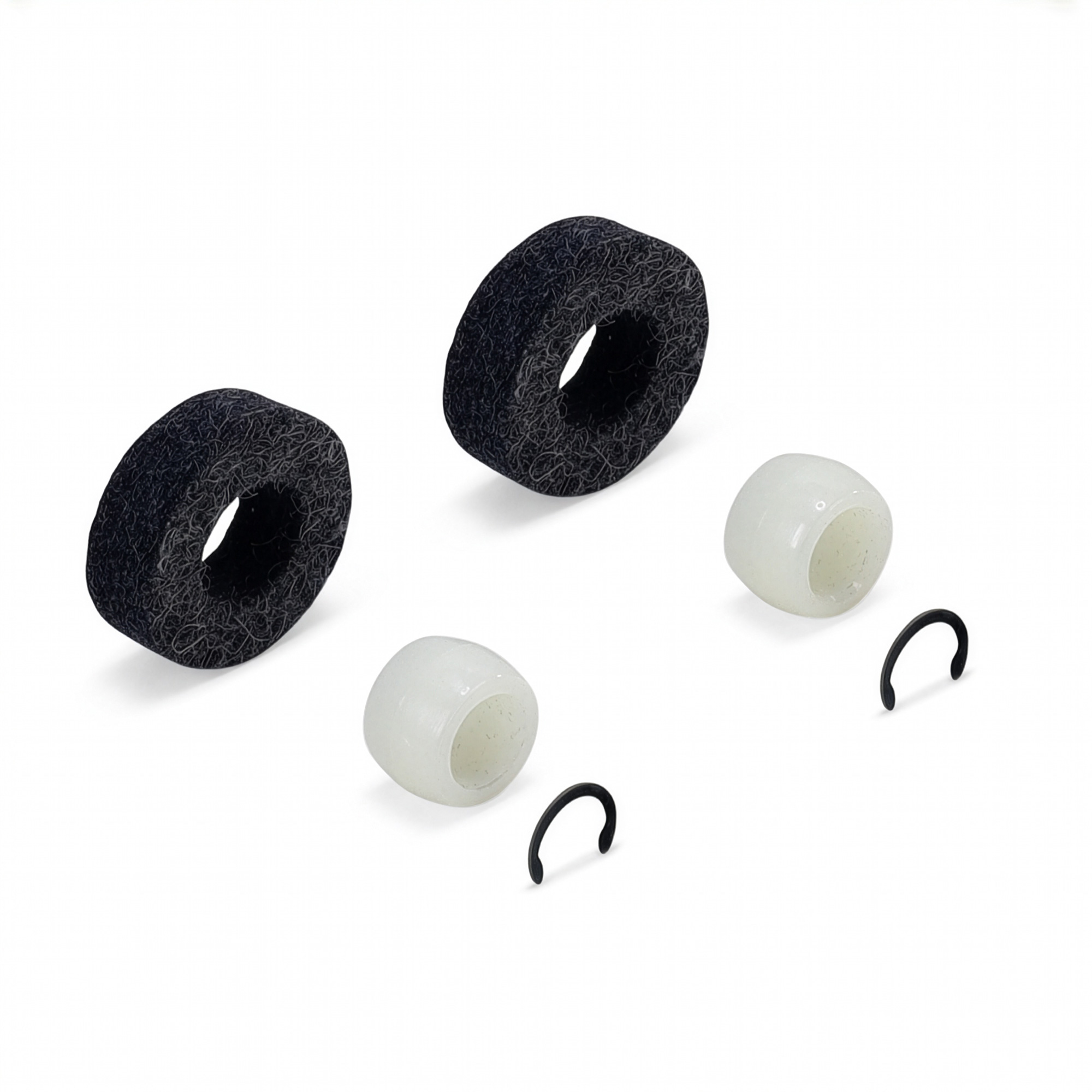 Complete Kit – Includes 2 nylon bushings, 2 felt washers, and 2 retaining clips for a full refresh.