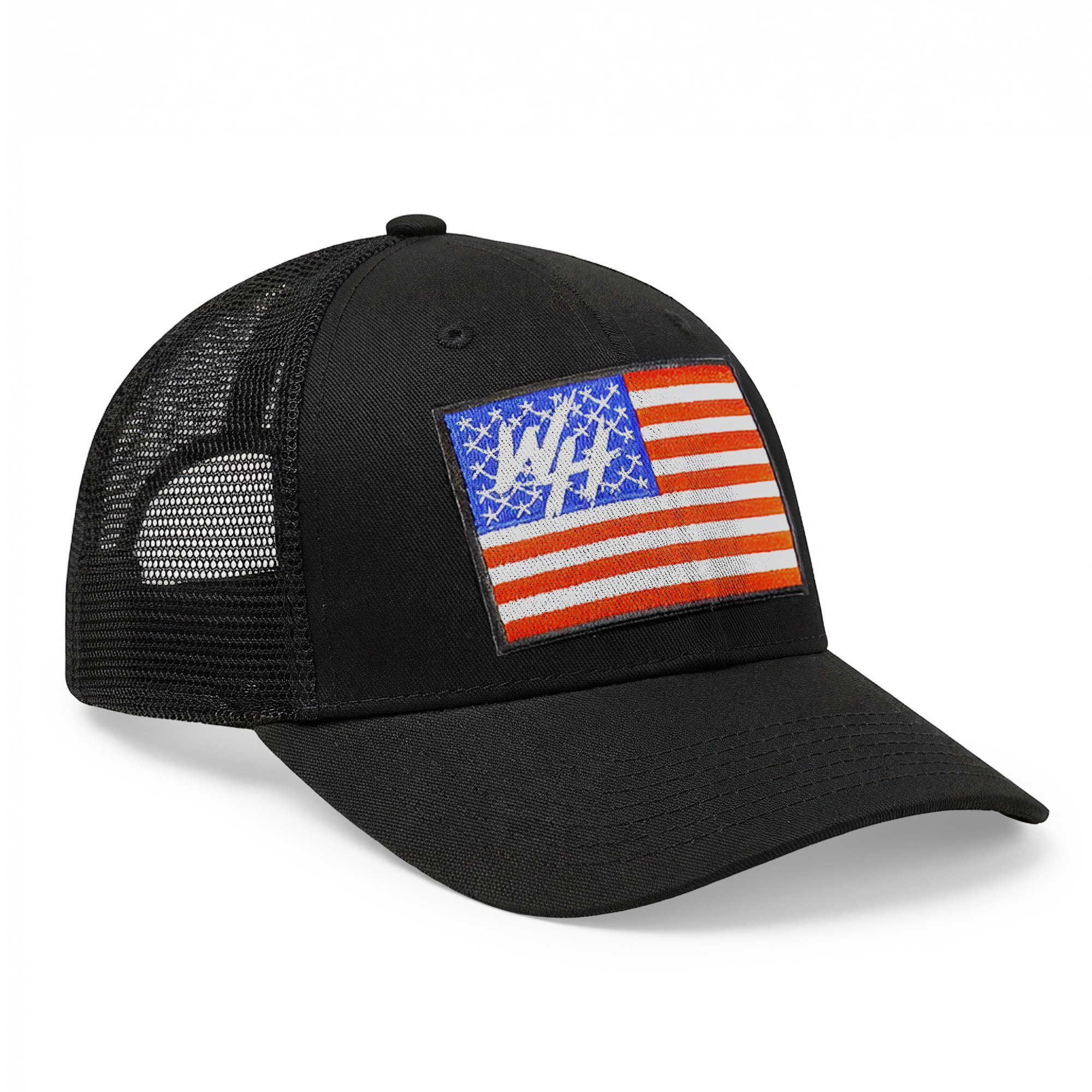 American Flag Logo Patch: Stars and stripes design with embedded WH logo